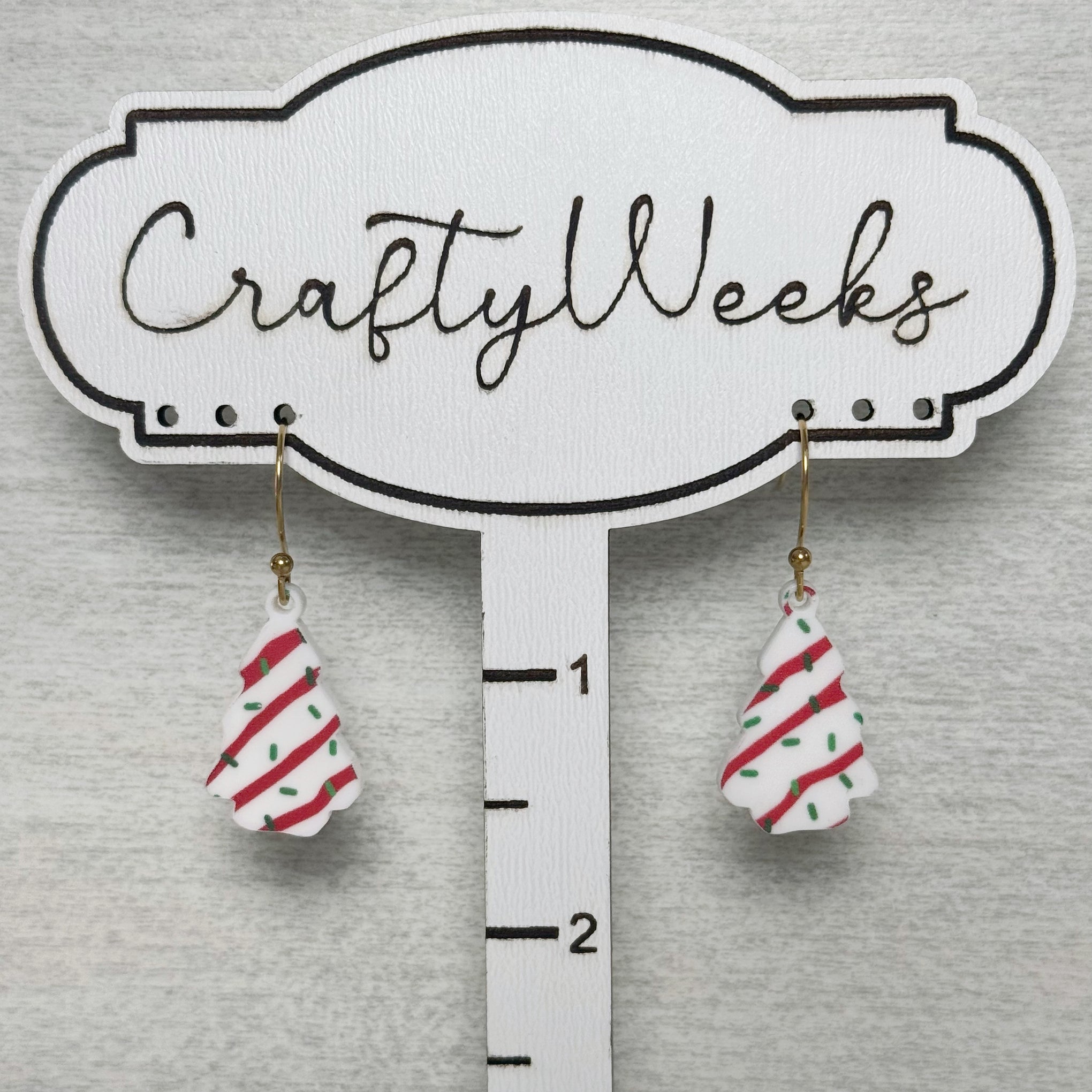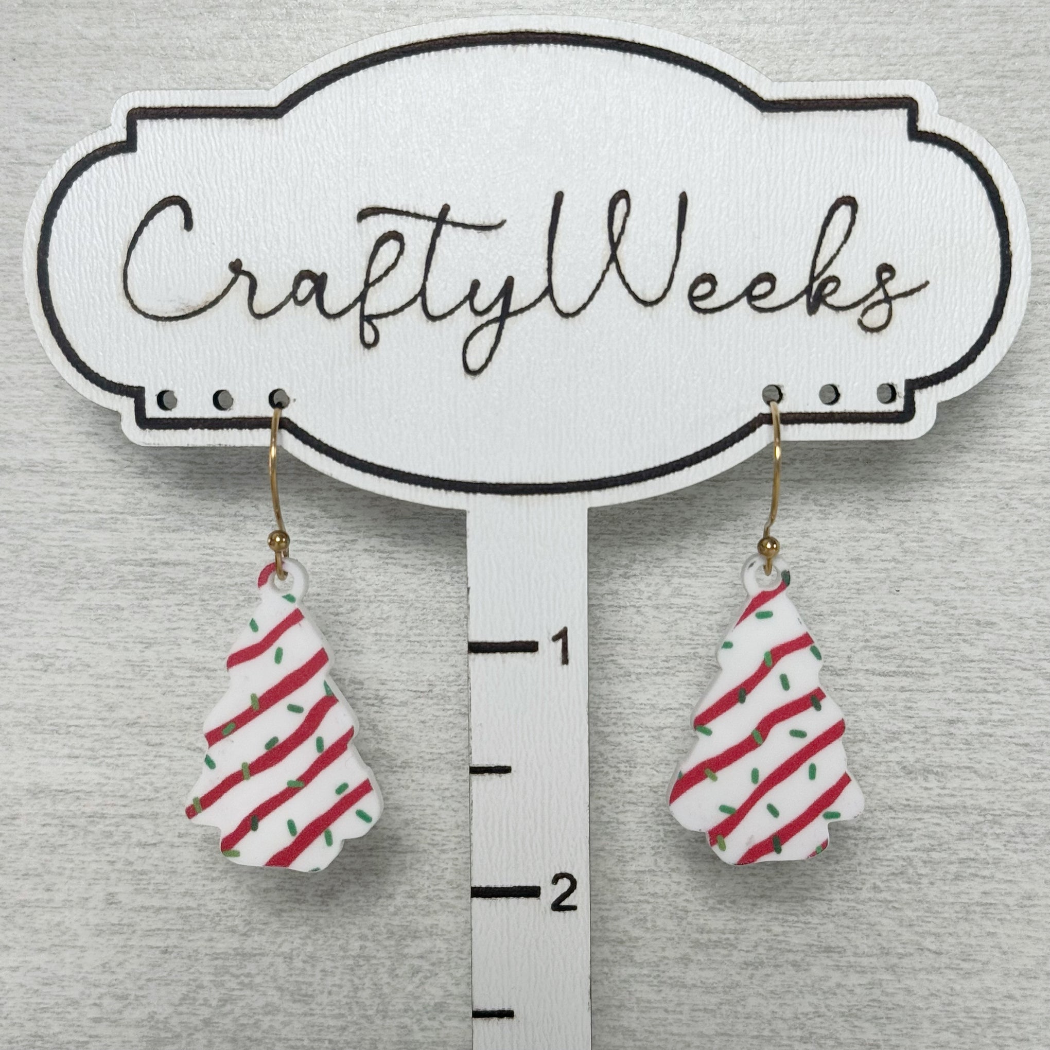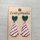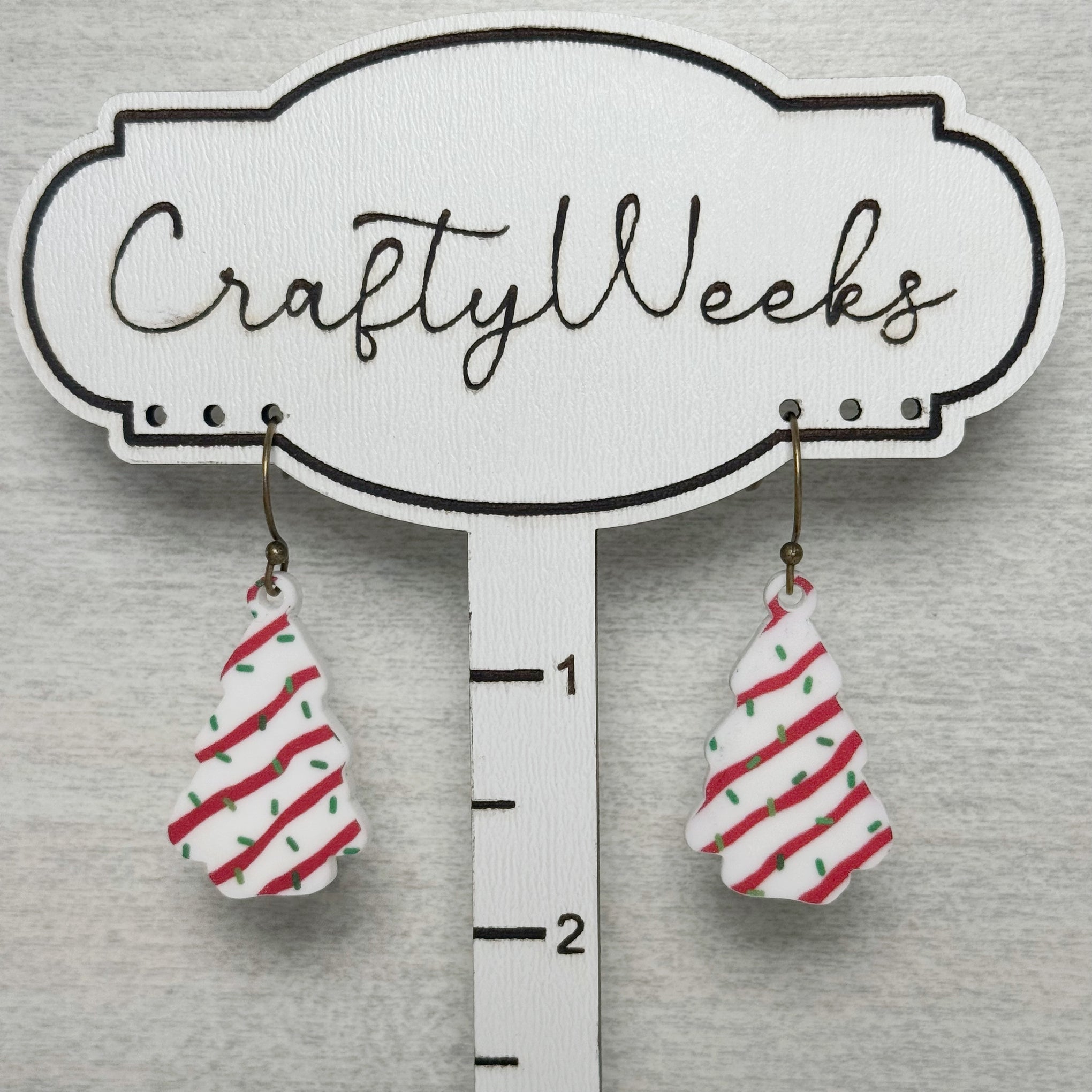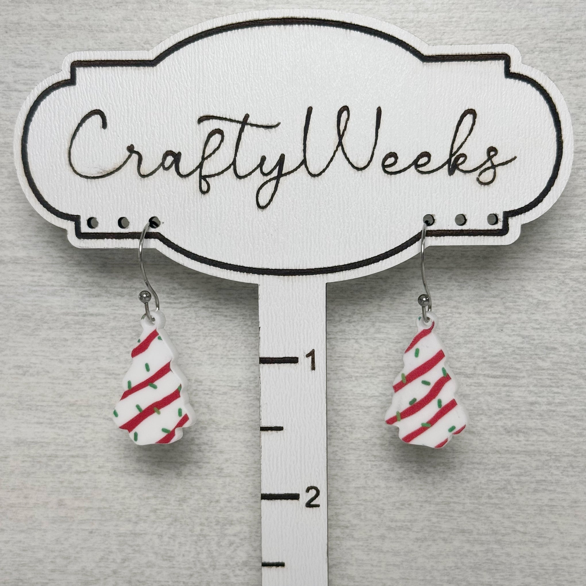 Handmade from Christmas Tree Cake pattern acrylic with Stainless steel posts or hooks.