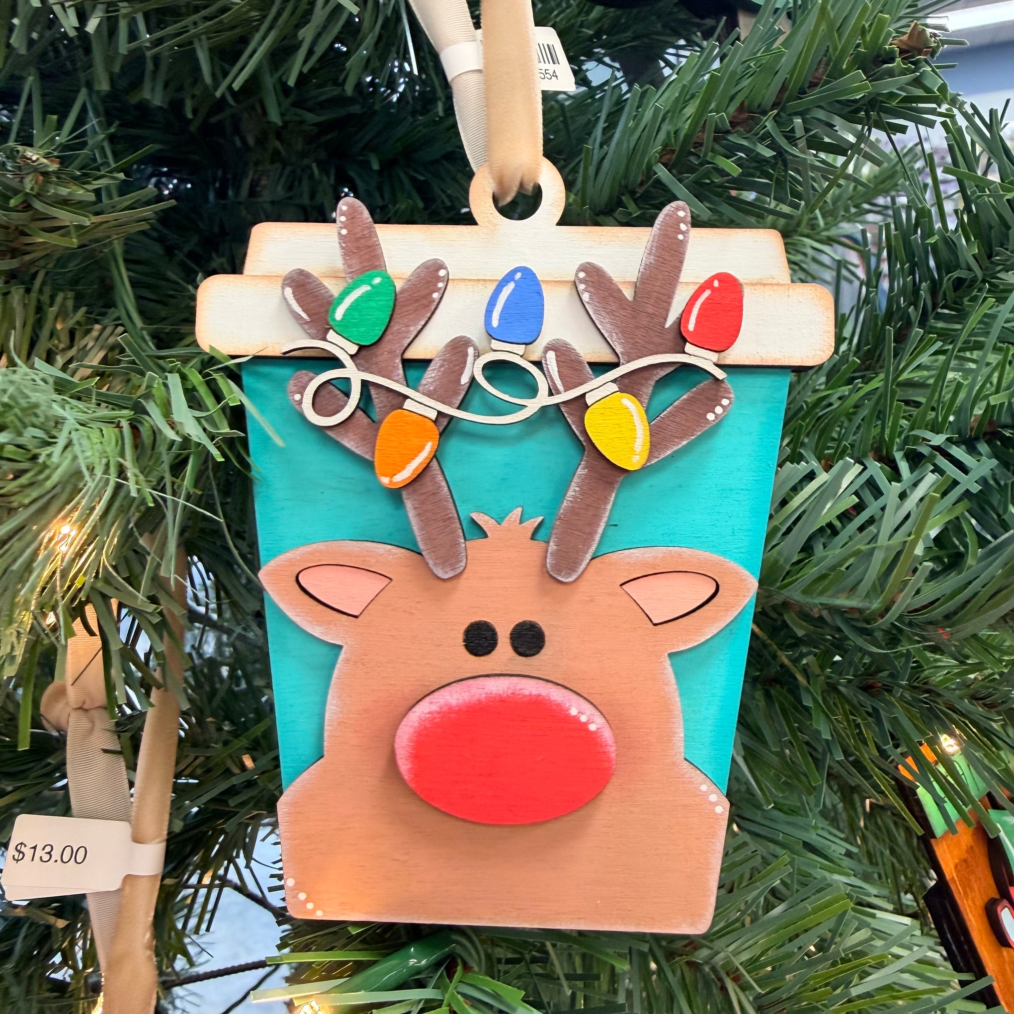 Handpainted with velvet ribbon hanger - you are ordering the exact ornament in the photo. The back is finished in black with a giftcard slot.