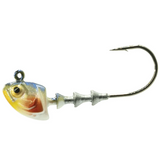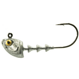 A close-up image of a single Finesse Swimbait Jighead with a 3D head design and a black nickel hook.