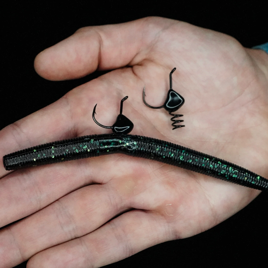 The Wacky Shot enhances your soft plastic’s movement with strategic weight placement for faster fall and more vibration. Its custom hitchhiker keeps the worm secure and increases hook gap — no O-rings or tubing needed.