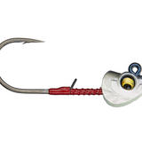 The Okashira head's hydrodynamic form is perfectly matched to finesse swimbaits and finished in elegant detail to draw in discerning targets. With carefully sculpted curves that channel water under the chin and around the bait, the Okashira head provides uncanny horizontal stability, along with subtle roll. This improves range-keeping ability and allows swimbaits and grubs to shine in even the toughest conditions. Hydrodynamic form for stability and subtle roll. Custom BKK® Super Slide hooks for superior penetrationHand-tied worm keeper secures bait like a pro.