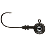 Molded with a multi-barbed bait keeper to securely lock in your favorite finesse swimbaits and minnow-style soft plastics, the Tungsten Neon Moon Eye excels with vertical and hover-style presentations due to its 90-degree line tie. Outfitted with 3D-holographic eyes that enhance realism, the VMC Tungsten Neon Moon Eye Jigheads offer a range of color options to effectively target multiple species in a variety of fishing environments.