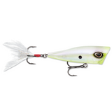 The Arashi Cover Pop travels with minimal forward movement to maximize the time your lure spends in the strike zone. Emulates prey struggling on the water’s surface. Ideal lure for target fishing. Work close to laydowns, docks, rocks and anywhere else bass would hold on.Aerodynamic shape and extra tail-weight provide increased casting distance and accuracy and allows the lure to enter the water tail first with minimal splash and sound. Rotated Hook Hangers nest the hooks close to the body for improved action even with the larger hooks. VMC® Black Nickel hooks with flash feather teaser tail seal the deal.