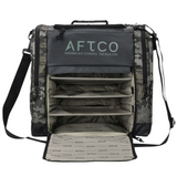 The Tackle Bag was built for all types of fishermen and is available in 3 sizes: 3500, 3600, and 3700.  Each size variation represents the size of tackle tray boxes that were designed to fit in the main storage compartment of the tackle bag. Each bag has shelving to store 4 tackle tray boxes in the main compartment. There is also a side pocket is also large enough to hold an additional tackle tray. AFTCO fishing tackle bags are made of a 600D recycled polyester with Nylon Zippers and a seam-sealed Tarpaulin base which helps keep water out when sitting on the deck of a boat or wet surface. The Tackle Bag has a top handle, adjustable shoulder strap, and additional storage compartments to stow additional gear and tackle.