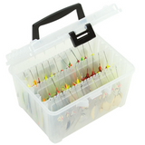 But unlike a lunch box, three adjustable bait racks keep the lures perfectly organized for quick access. And with Hydro-Flo holes in the lid and bottom, baits dry naturally to prevent oxidation and rust. Features: Swivel Carry Handle, Three Adjustable Spinner Bait Racks, Hydro-Flo holes let wet tackle dry naturally, Secure Pro-latch closure. Dimensions: 9.875"L x 8.375"W x 6.125"H