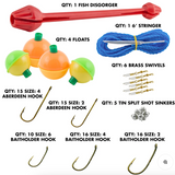 The Worm Gear 88-Piece Loaded Tackle Box Kit is a one tray tackle box that comes complete with a hook remover, 6 ft stringer, non-lead split-shot sinkers, brass swivels, multi-colored floats and an assortment of hooks. 88 Pieces in all.