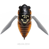 HARD-PLASTIC EXOSKELETON DOUBLES AS A RATTLE-CHAMBER, GENERATING A FREQUENCY WHICH IS PRECISION-TUNED TO MIMIC THE CICADA’S FADING CRY.