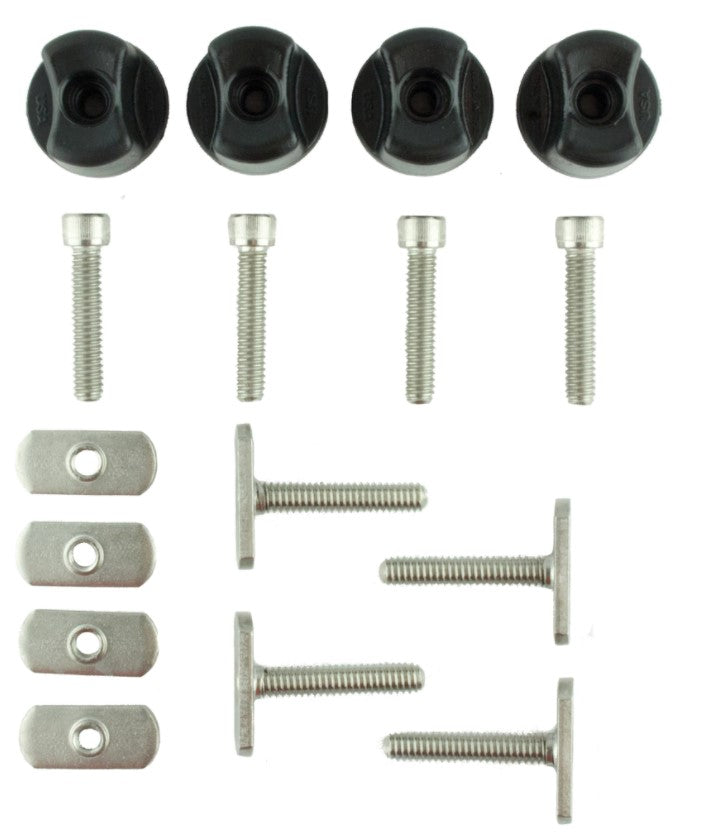Includes four of each: Convertible Knobs, 1-1/2'' MightyBolts, Track Nuts, 1-1/4'' Socket Head Cap Screws. All standard 1/4-20 thread. Compatible with YakAttack MightyMount’s, GearTrac, and most other kayak track systems from Scotty Fishing Products, RAM Mounts, and YakGear. For FeelFree Kayaks, 3 Water Kayaks, and Jonny Boats you will need an adapter to be compatible. We offer the needed adapter in a single pack (AAP-1012) and a six pack (AAP-1012-6).