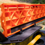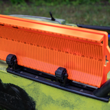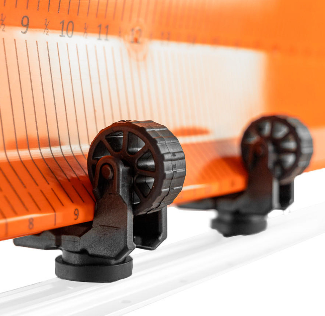 To secure your YakAttack LeaderBoard, you will need two LeaderBoard RotoGrips attached in-line on a track surface, preferably 6” or more from one another. Insert the underside of the LeaderBoard into the hooked side of the RotoGrip and rotate the board towards the wheels until it is in a vertical orientation and locked into place. The LeaderBoard will only release in one direction to prevent you from accidentally knocking it out into the water. To release and remove the LeaderBoard, roll the board away from the RotoGrip wheels towards the hooks, and the board will come out with ease.