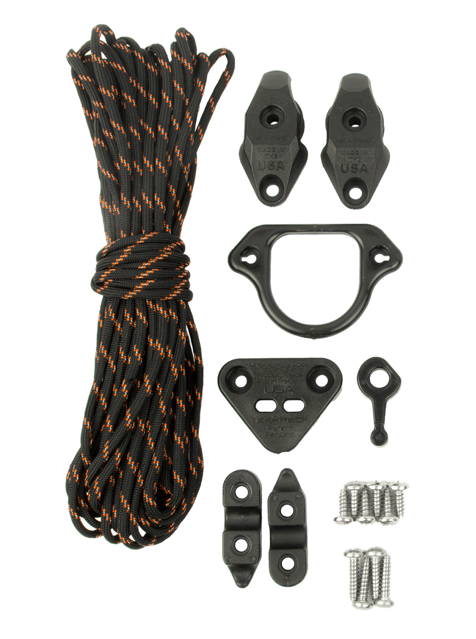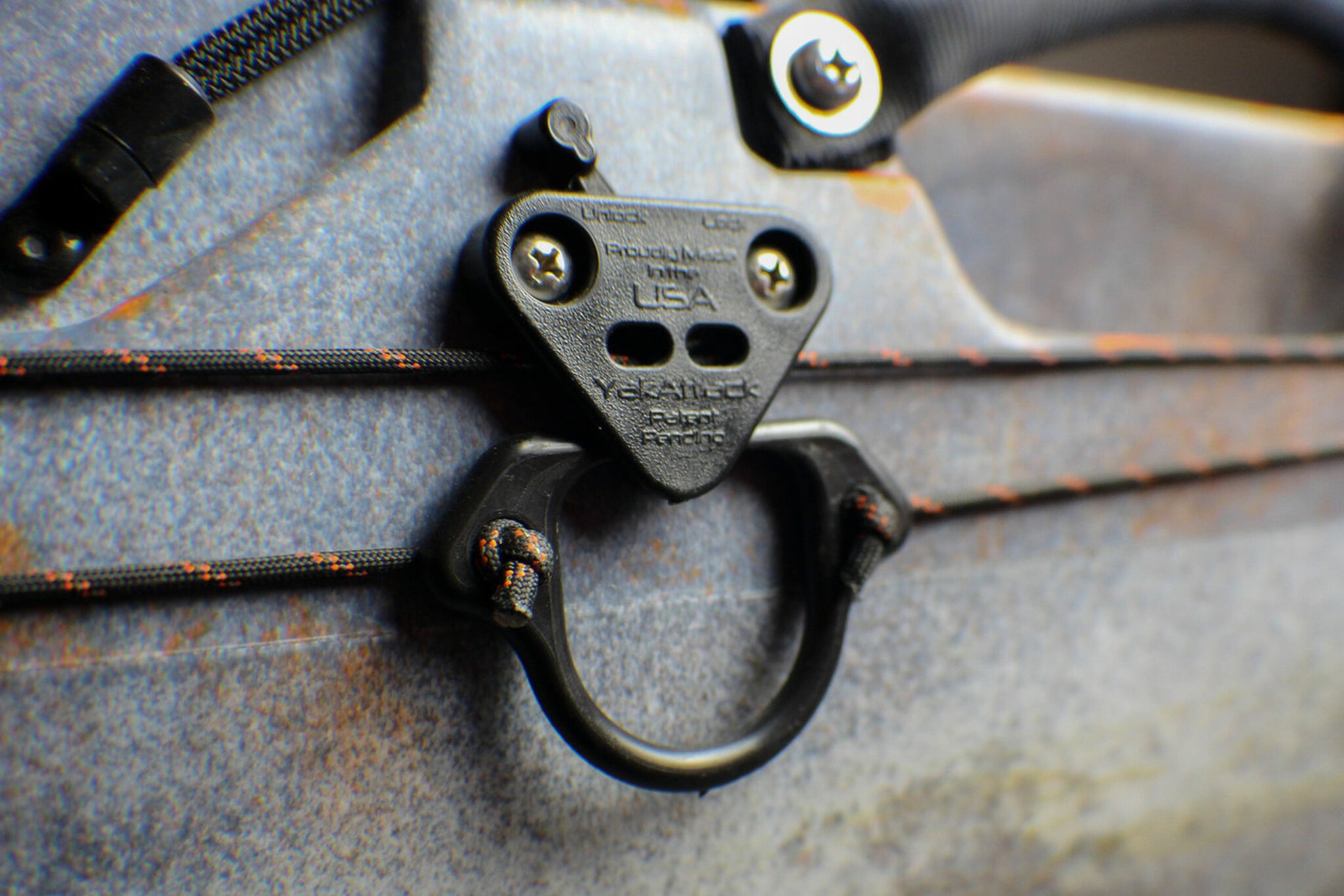The first anchor trolley designed specifically for the job, the YakAttack LeverLoc™ Anchor Trolley features a LeverLoc™ line clamp, which locks your trolley line in place with a simple “flip of a switch” motion. Keeping the trolley lines in line is the PadHook, a simple but clever design that combines the functionality of both a pad-eye and a hook, keeping even the tightest trolley lines in place on the side of the kayak, not over your gunwale. When not in use, the easy-knot trolley ring snaps into the base of the LeverLoc™, quietly secured until deployed. Includes 35’ of USA made 550 paracord with a highly reflective tracer. Features YakAttack Stealth Pulleys for super smooth operation.