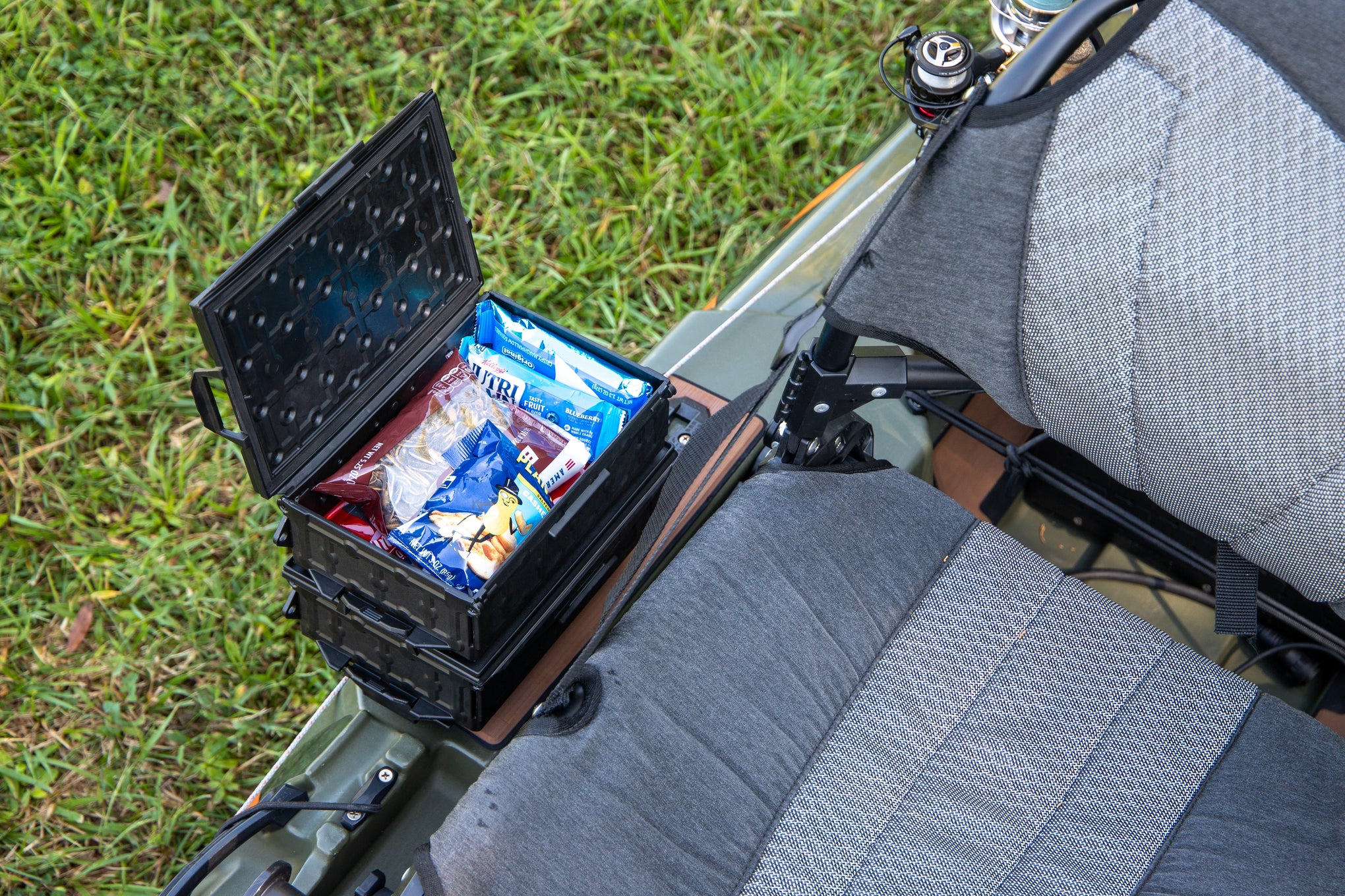 The stackable storage boxes quickly and securely snap onto the base and on top of each other. When two boxes are stacked on top of each other, you have the ability to not only access the top box, but you can access the bottom box. With interior dimensions measuring 8.375” x 5.375” x 2.375”, there are many ways to utilize this secure quick access storage box. From tools to terminal tackle, the TracPack is a unique and handy storage solution for both recreational and kayak anglers. Sold as a two-pack of storage boxes and includes the quick release base. The TracPak is not waterproof or water-tight and does not float, so each storage box features an eyelet if you choose to use a leash for added security.