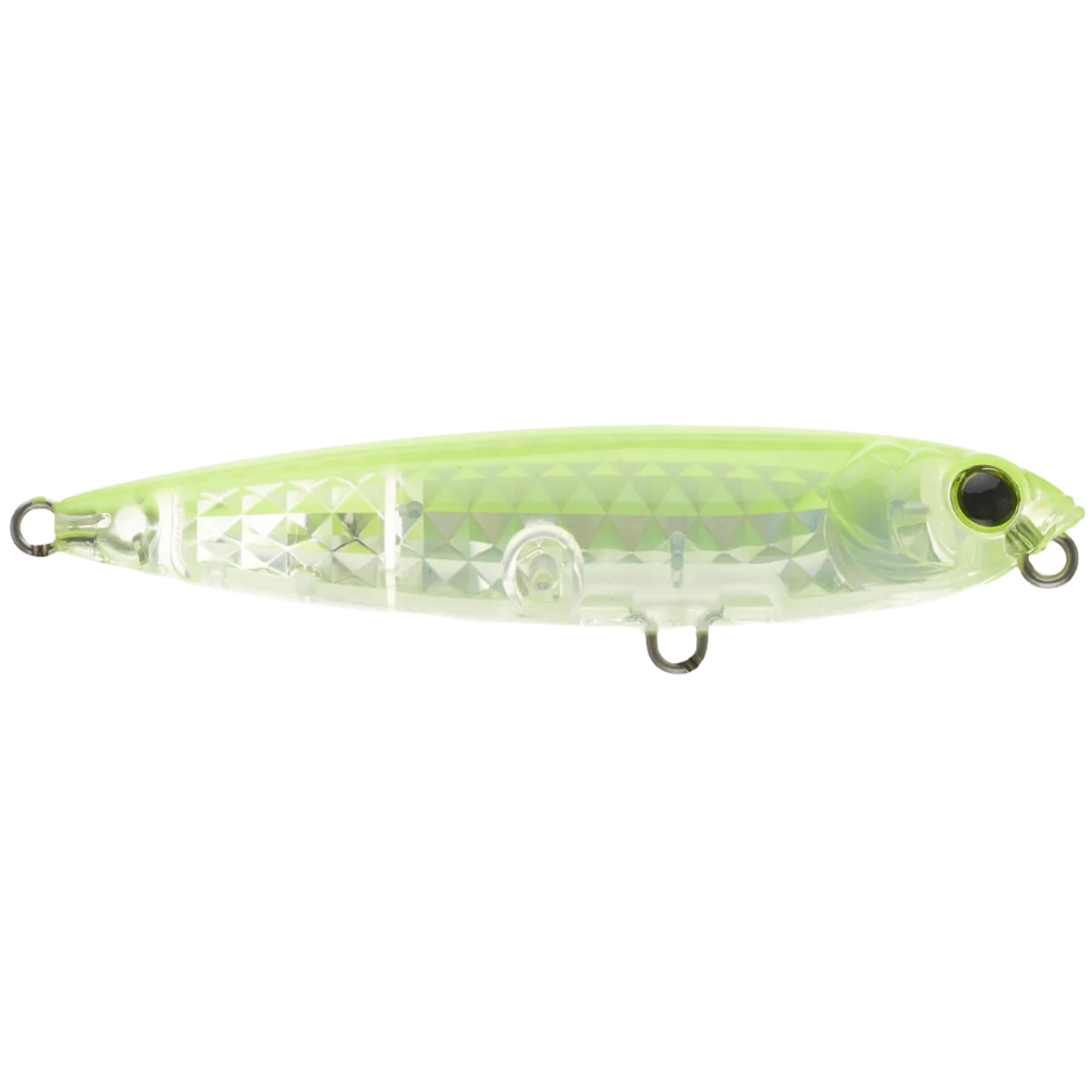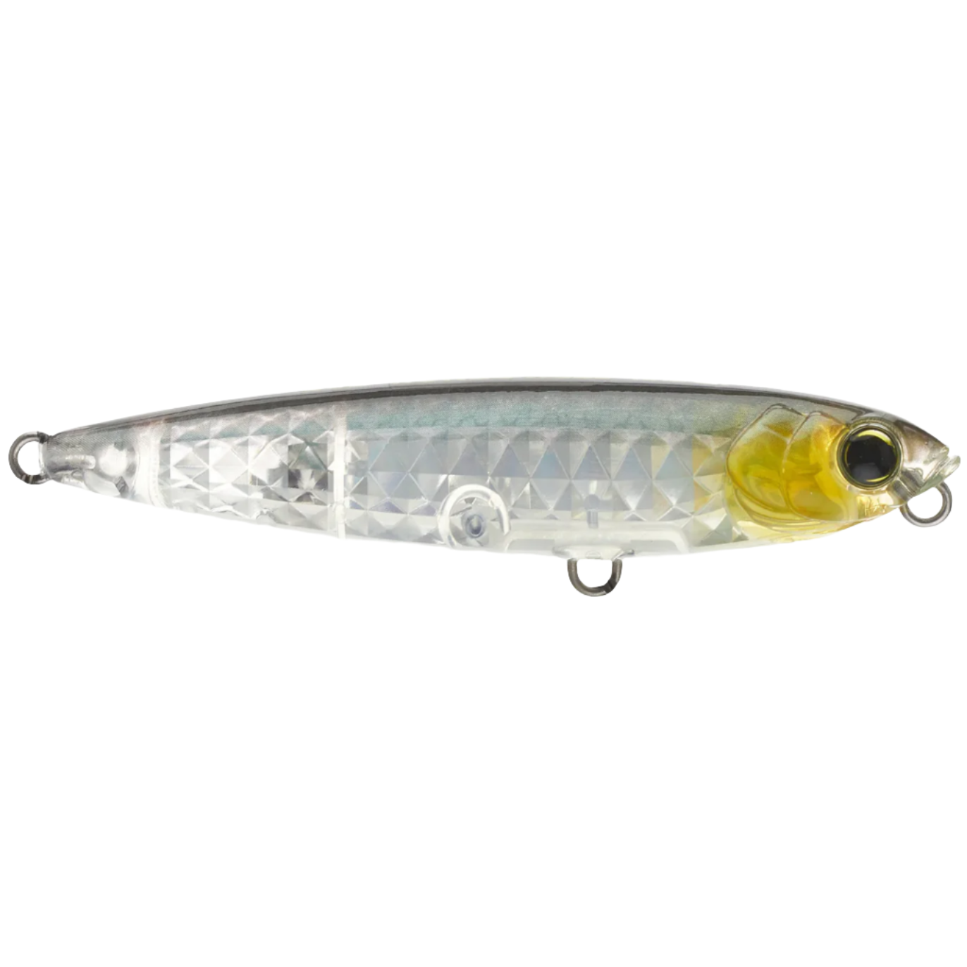 Yo-Zuri's 3DR-X Pencil features internationally patented 3D internal prism scale finishes that sends off light in all directions. The pencil is a compact (3", 1/4oz) walking bait that even entry level anglers can fish. It features a single knock cadence rattle and black nickel hooks.